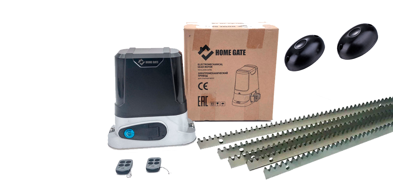 Комплект электропривода для откатных ворот HOME GATE LTM 600 + рейка 5 шт + фотоэлементы + лампа