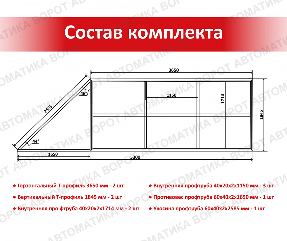 Каркас с фурнитурой и шиной 5,3м для проема 3500х2000 мм (Алютех) + ARW-600KIT + рейка 4 шт